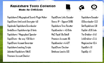 Ferramentas para burlar o rapidshare. Só quero dizer que eu não confio nesse tipo de ferramentas e por isso nem testei, só to passando aqui os links para a galera testar. Lembrem-se, se trata de ferramentas hacker e por isso devem ser escaneadas com o antivirus antes de serem executadas.Boa sorte a todos.